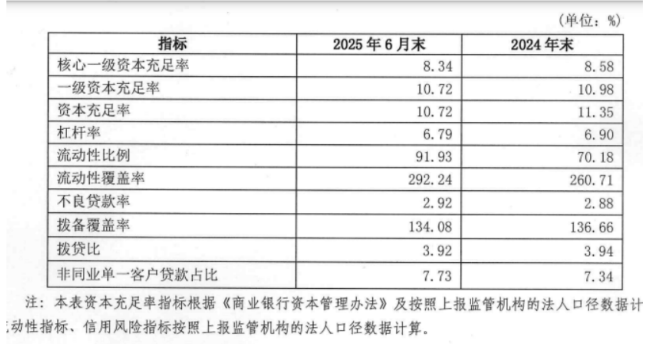 截至2025年6月底,大连银行不良贷款率2.92%,较上年末的2.88%上升了0.04个百分点,拨备覆盖率134.08%,较上年末的136.66%下滑了2.58个百分点,风险防范能力有待进一步加强。